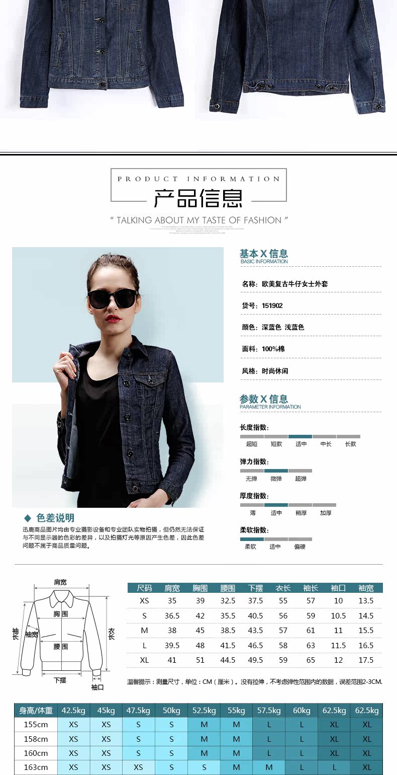 迅鹿女士牛仔夹克