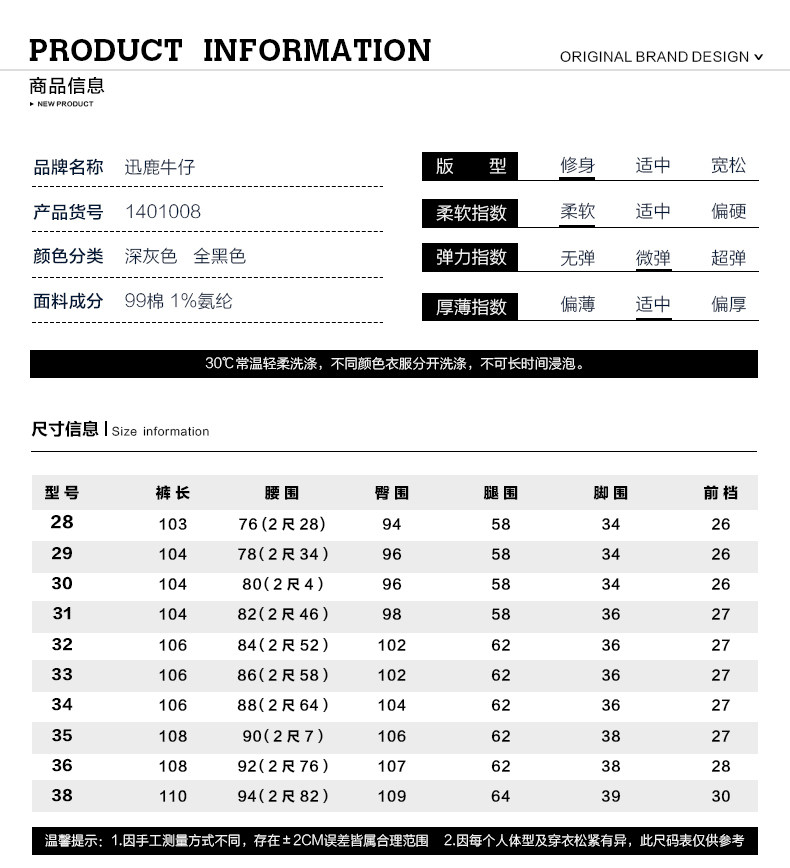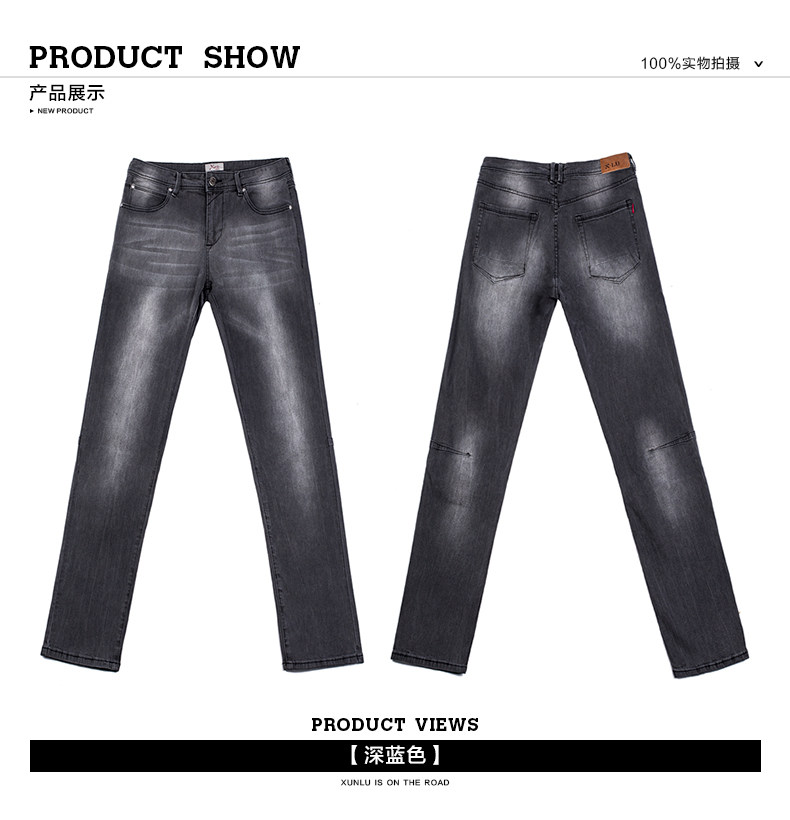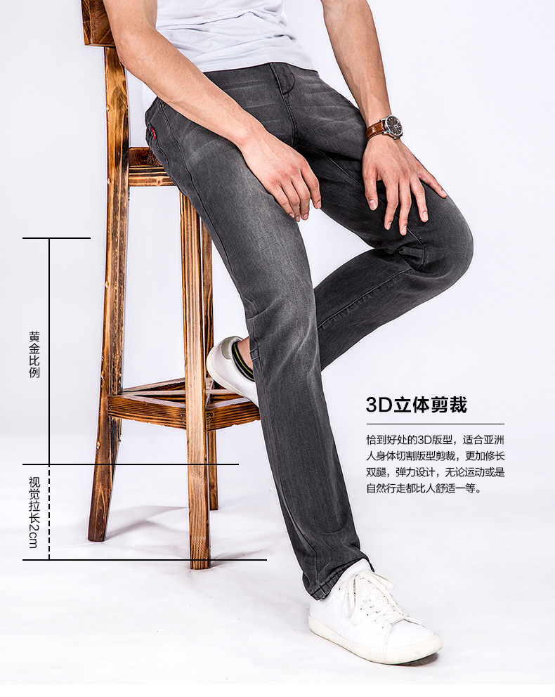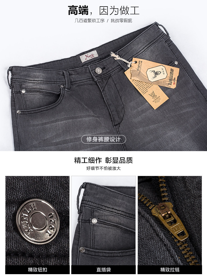 迅鹿牛仔裤男秋韩版弹力青年秋装新款牛仔裤黑灰色长裤